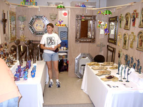 Several types of lovely mirrors with hand- punched and hand-tooled tin frames. Some frames have inlaid handmade Talavera tiles (left); the one on the right has inlaid stones. Click HERE to see more mirrors. | ![]() |