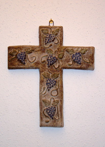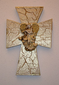 | Right, just a few of the various types of rustic crosses. Below is a retablo (altar piece), another type of cross; and a picture of Isidro, the young man who crafted the crosses, and his family. | ![]() |