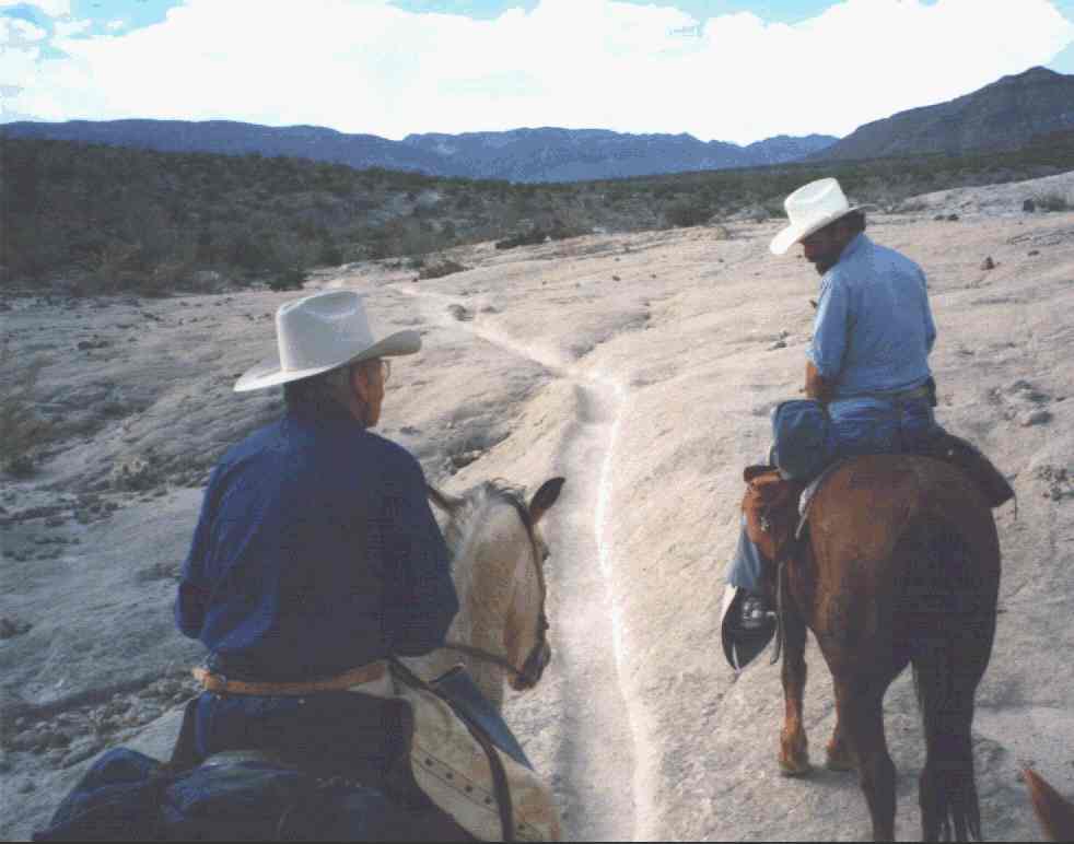 Our day’s journey almost completed, we rode across a wide area of solid white rock where centuries of hoofbeats have etched a trail several inches deep.