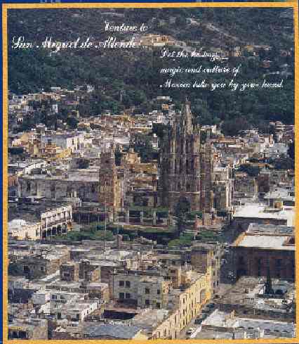 San Miguel was founded in 1542 and has been declared a national monument. Most of the buildings date from the colonial era and new buildings must conform to existing architecture. Many of the shops, hotels, and restaurants are housed in beautiful mansions dating from the silver-mining days in the region. (To see a picture of the city, click HERE. For a picture of the beautiful Parroquia (parish church) which is San Miguel's best-known landmark, click HERE.)