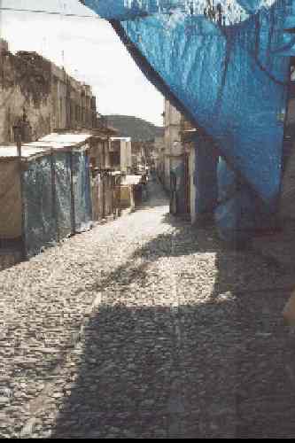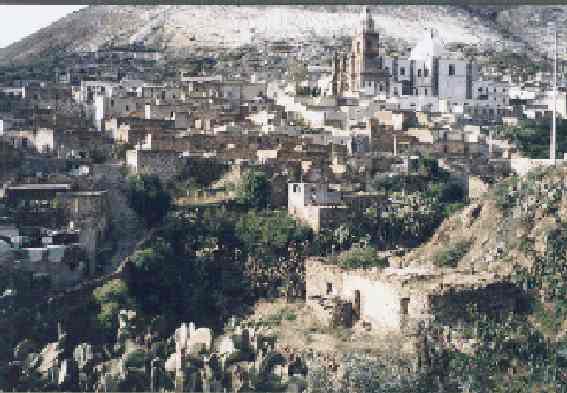 Real de Catorce has a ethereal feeling. The ruins are wonderful, and many photography workshops come to photograph the town and ruins under the beautiful, constantly changing sky. (To see a picture of the town, click HERE. Many of the buildings are unoccupied ruins. (This trip was before digital cameras, and my scanned photos aren't nearly as clear and wonderful as digital photos.) For a picture of me standing in front of some giant cactus, very typical in the area, click HERE.)