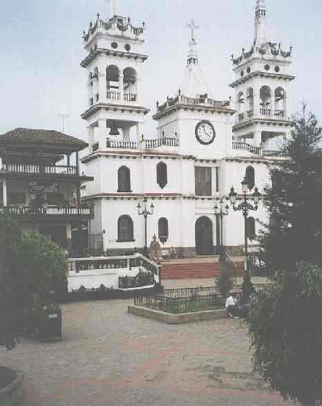 Mazamitla's weather can be described as semidry, with dry winters and springs. The weather is said to be generally comfortable, and winter is not really defined. Mazamitla is in the mountains - in the Sierra del Tigre Mountain Range - and it is surrounded by cedar and pine forests. Before arriving in this area, our travels had not taken us through any other places in which the buildings were constructed of wood. The town is rustic, with houses and building painted in white, with red-tile roofs, and wood doors and columns. The whole town itself can be considered an architectural attraction. To see a picture of the church on the main square, click HERE.)