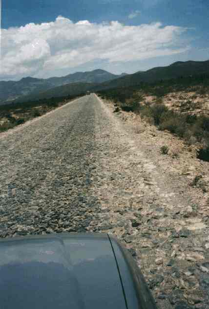 Leaving Real de Catorce at 10:00 a.m., we went back through the tunnel and over the 20 miles of cobblestone. When we reached the main road, we headed northwest, and then turned south when we reached Highway 54. This road is one of the most heavily traveled by trucks in Mexico and it is fairly narrow, rough, and has no shoulder.