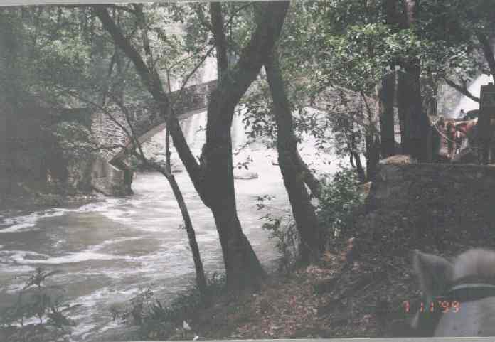On the way out of town, we found (with some difficulty) the location of the Tzararacua waterfall. I did a horseback ride down steep paths to the falls and the river running below while T.C. chose to wait above. (To see a picture of the river beneath the falls, click HERE.) You'll see my horse's ears in the lowr right-hand corner.