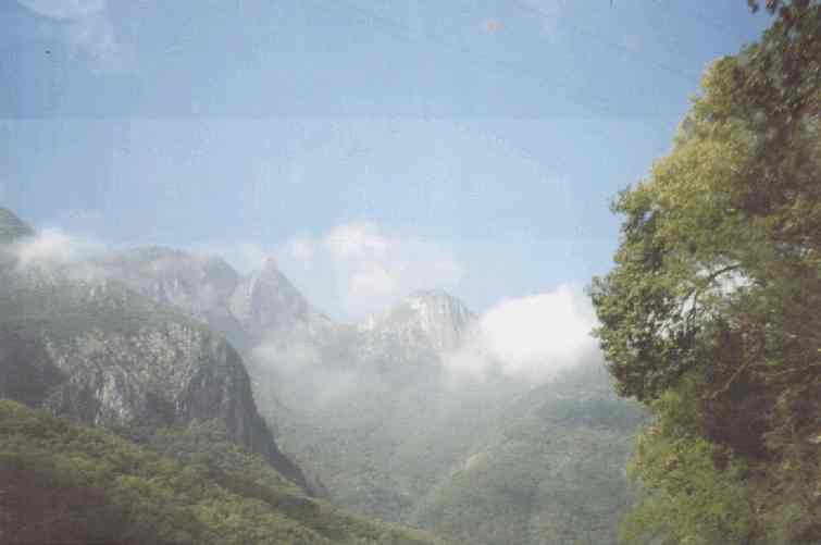 Leaving Linares on Highway 58, we soon saw huge cloud-shrouded mountain peaks ahead. (To see a picture of the mountains as we entered them, click HERE.)We were entering the Sierra Madre Oriental - and the cooler weather of the mountains (while most of the U.S. and the lower elevations of Mexico were suffering from a massive heat wave during this time).